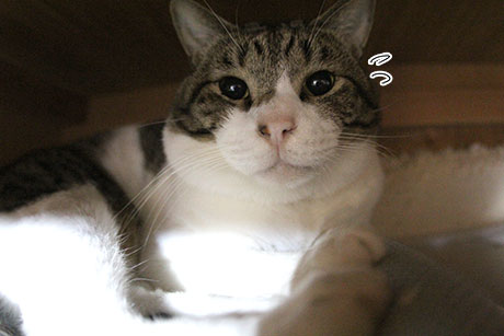 で、ほっこりしながらトイレに行って戻ってきたら・・・ニャオスがいない。