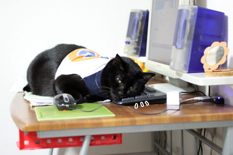最初はニャオスも一緒にパソコンを見ていたのですが・・・