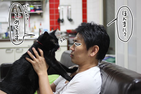 ニャオスは脱いだ服をかけてあげるとグルグル言って喜びます![]()