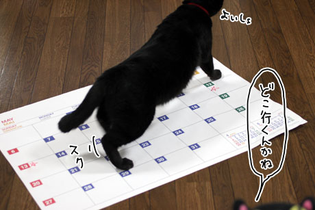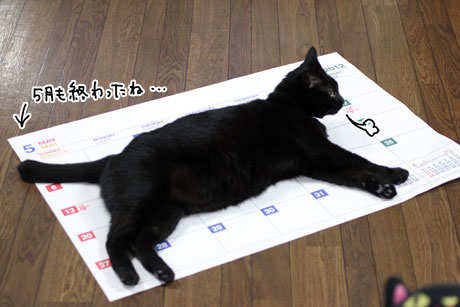 それにしても、ニャオスは毎月そーやってはがしたカレンダーの上で寝るよね。