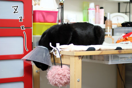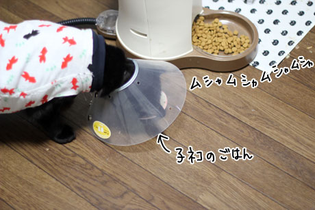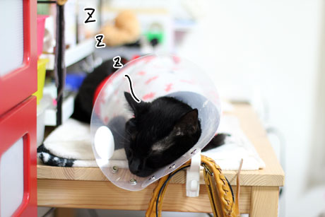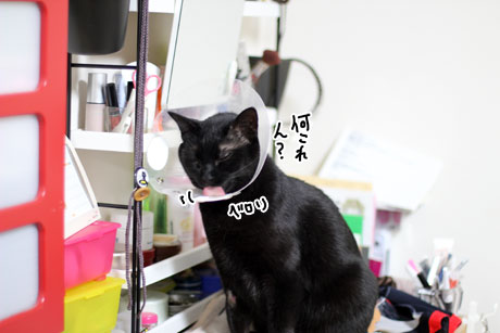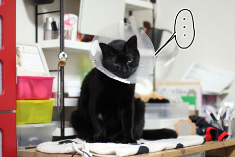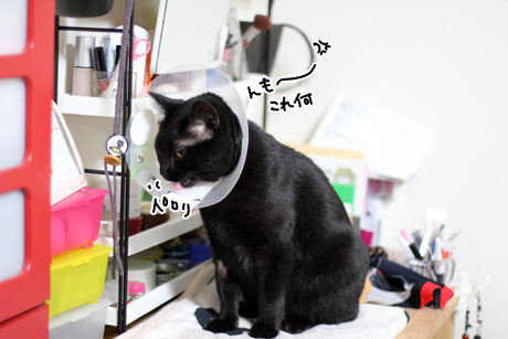 シャンプーハットで作ったカラーは頑張れば傷口に舌が届きそうなのでもとのお医者さんのに戻しました。
