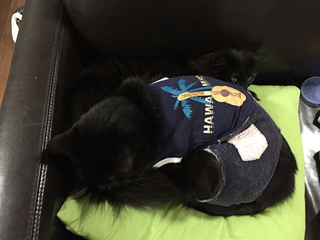 ニャオスがオスカーを枕にしてるなんて珍しいね。